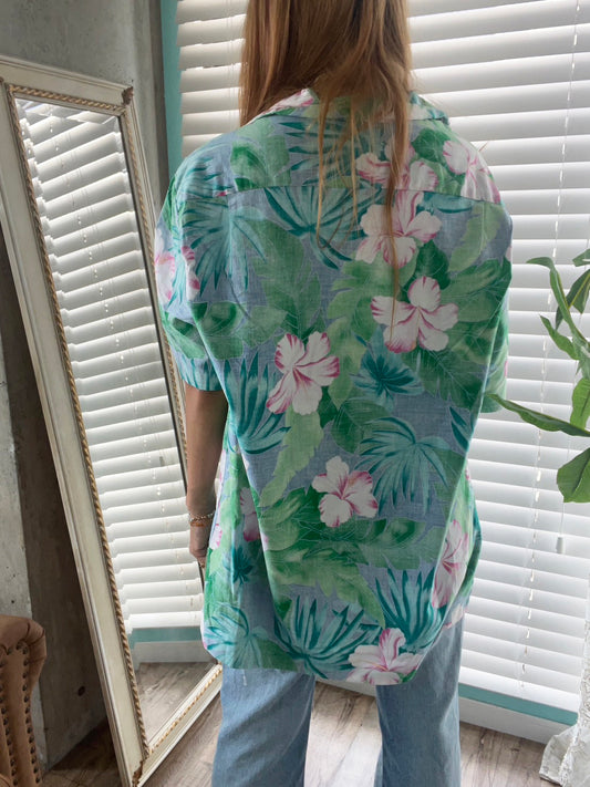 【Hilo Hattie Hawaii】 All Over Pattan cottton Aloha Shirt (men's XL)