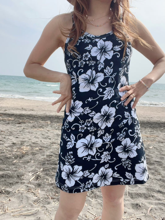 【Dead Stock one wash】AGGRO PACIFIC HAWAII Black Hibisscus dress (women'S M)