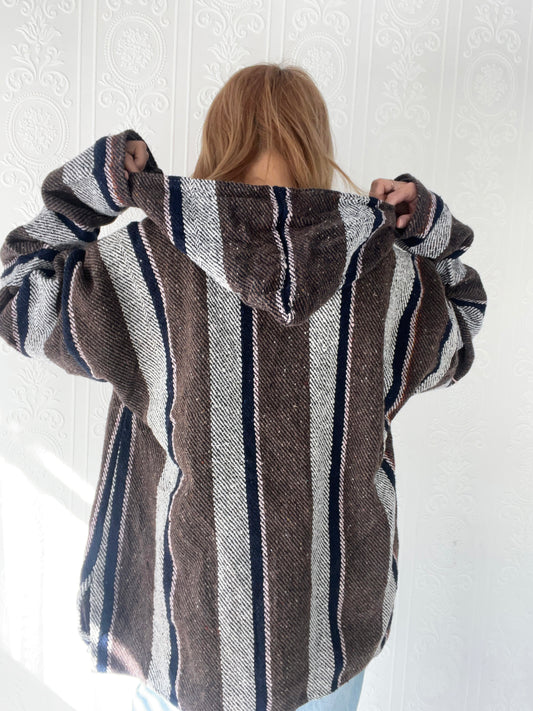 purple stripe mexican parka Baja Hoodie (Size:XL)