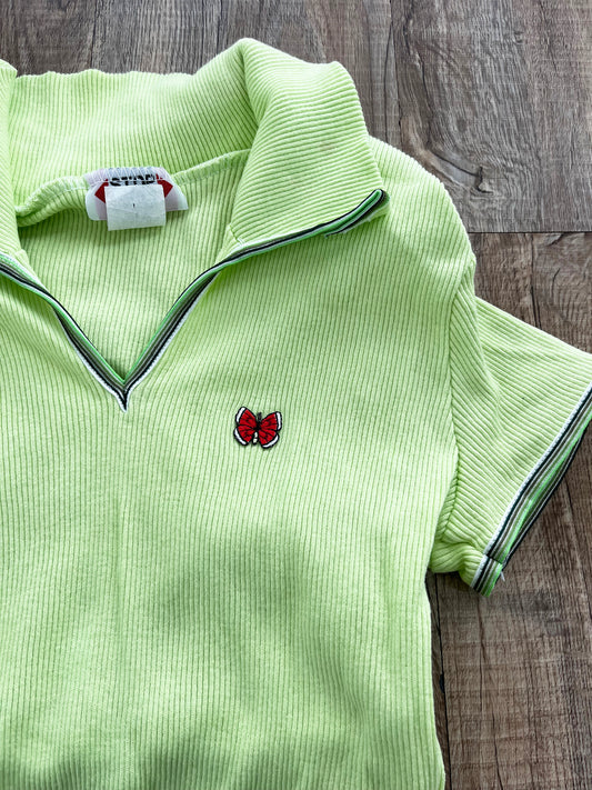 90's STOP HERE USA V-neck shirt Green (SMALL)