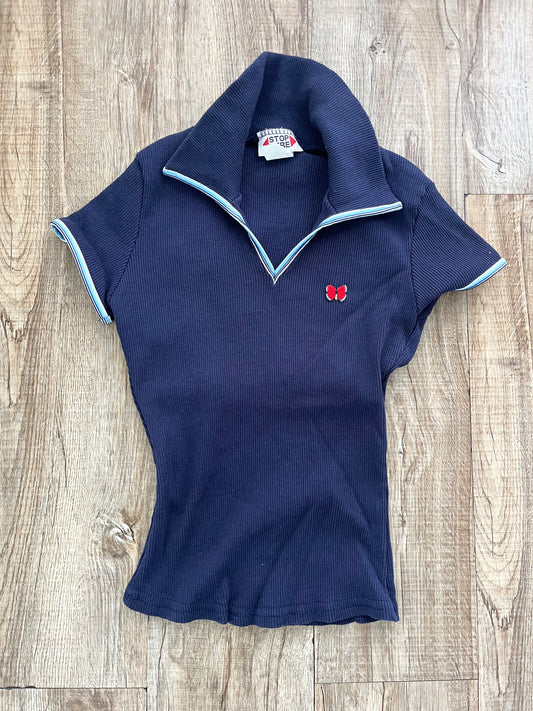 90's STOP HERE USA V-neck shirt Navy 1 (SMALL)