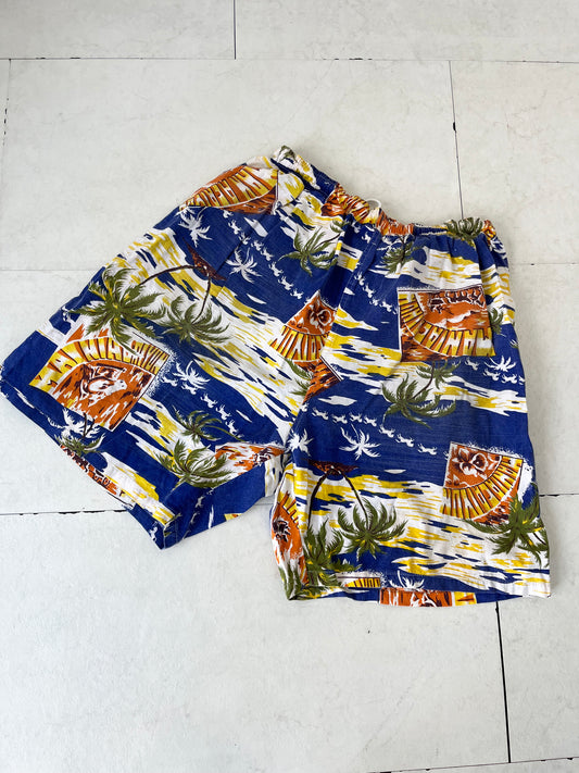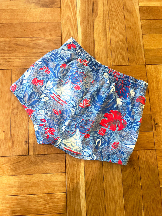 【EURO vintage】Laguna BLUE FLOWER beach shorts (size S)