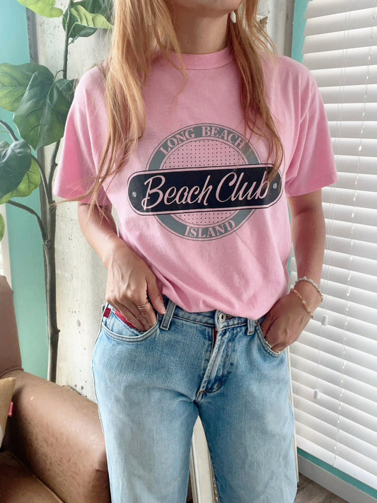 【vintage】80's LONG BEACH ISLAND BEACH CLUB T-shirt Made in USA(women's L)