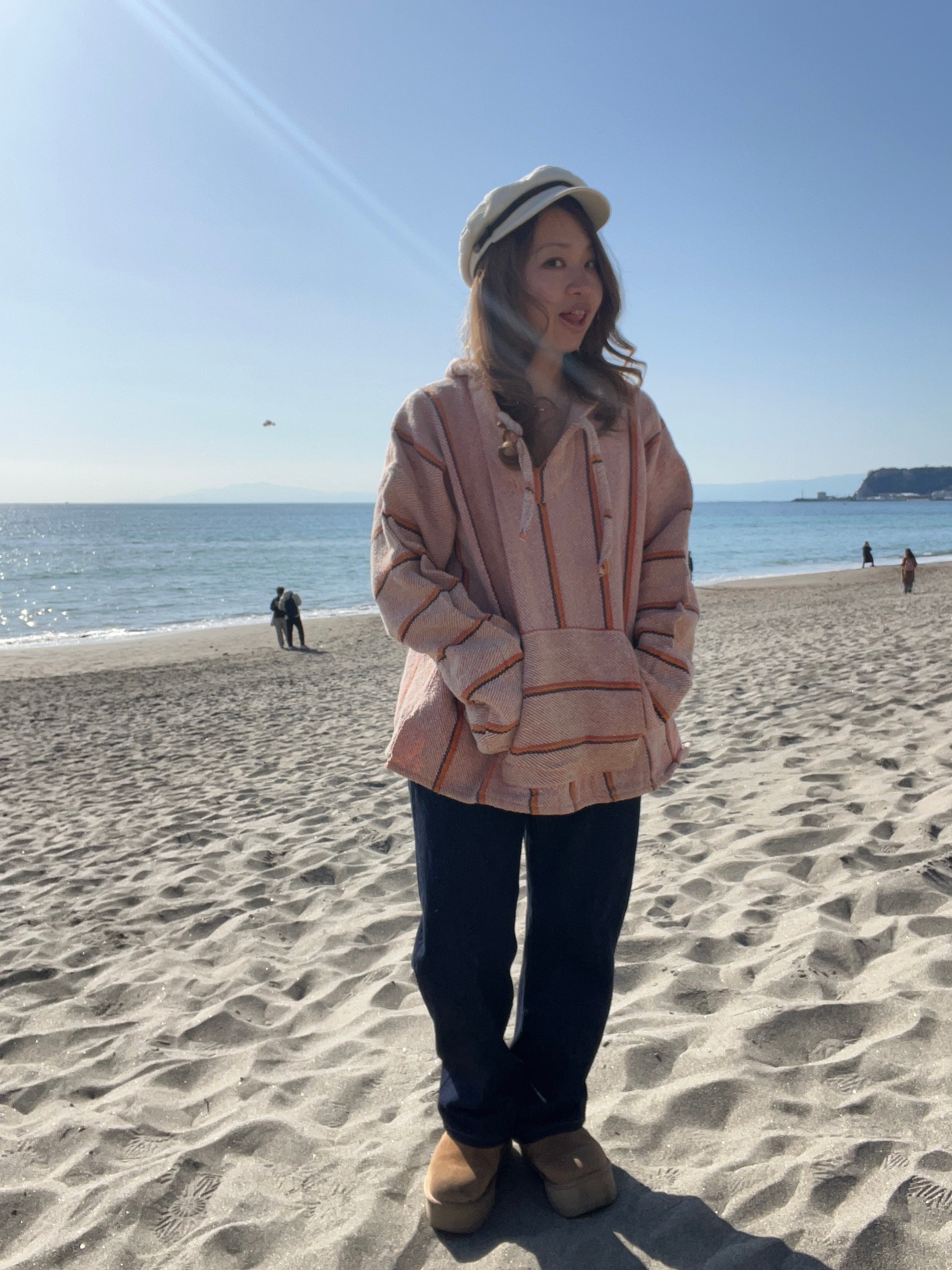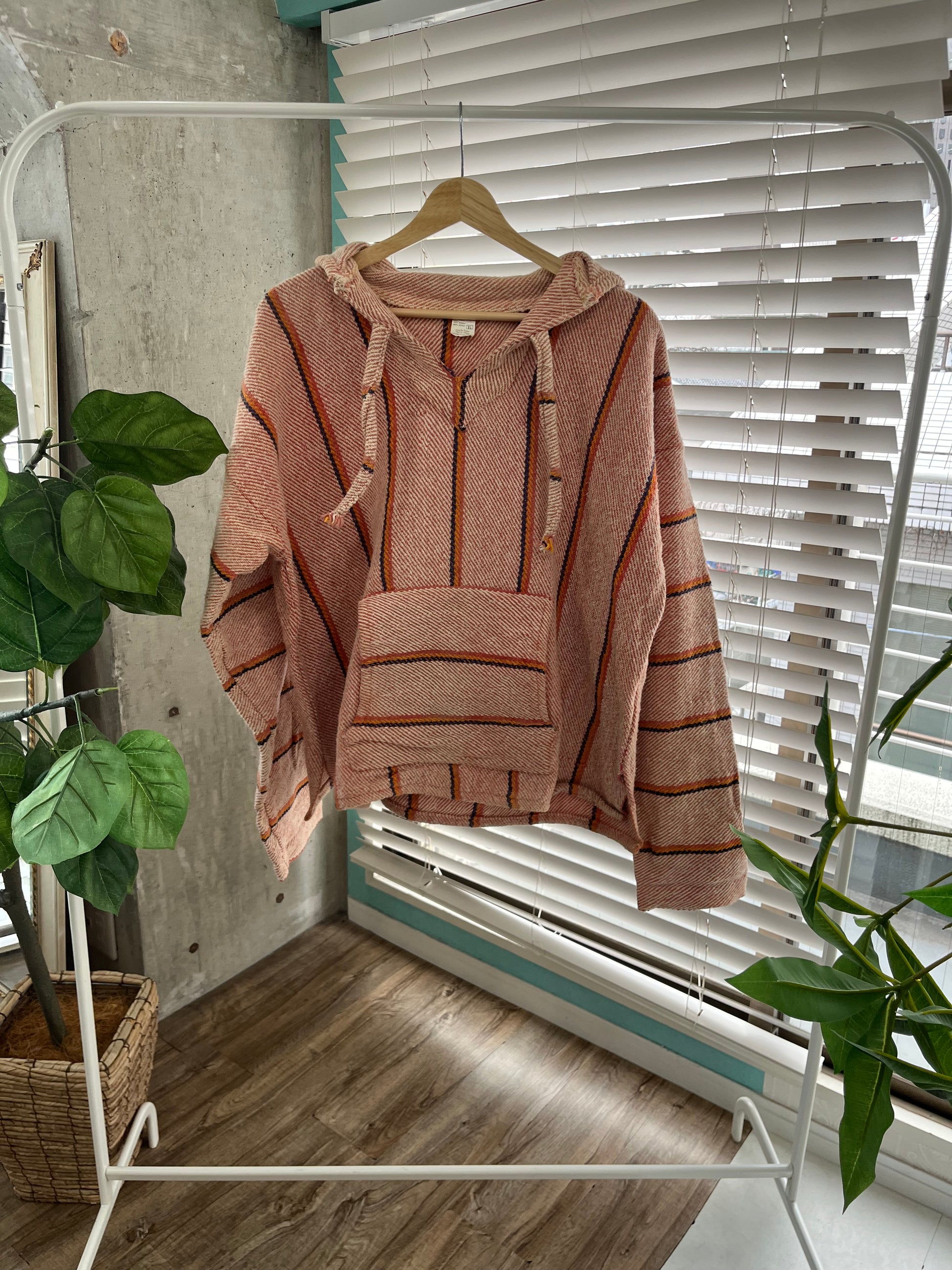 ●詳細:かつてのヒッピー文化やサーフ文化を象徴するアイテムの1つであるメキシカンパーカー。明るいベージュカラーの配色でコーディネイトに取り入れやすい。サイズ感はXLですが着丈はXLにしては少し短めなので実際の着用感はL相当。身幅はあります。コットン100%でしっかりした生地感。サーフィン後にもおすすめ。海上がりにさらっと羽織るのにぴったりです。