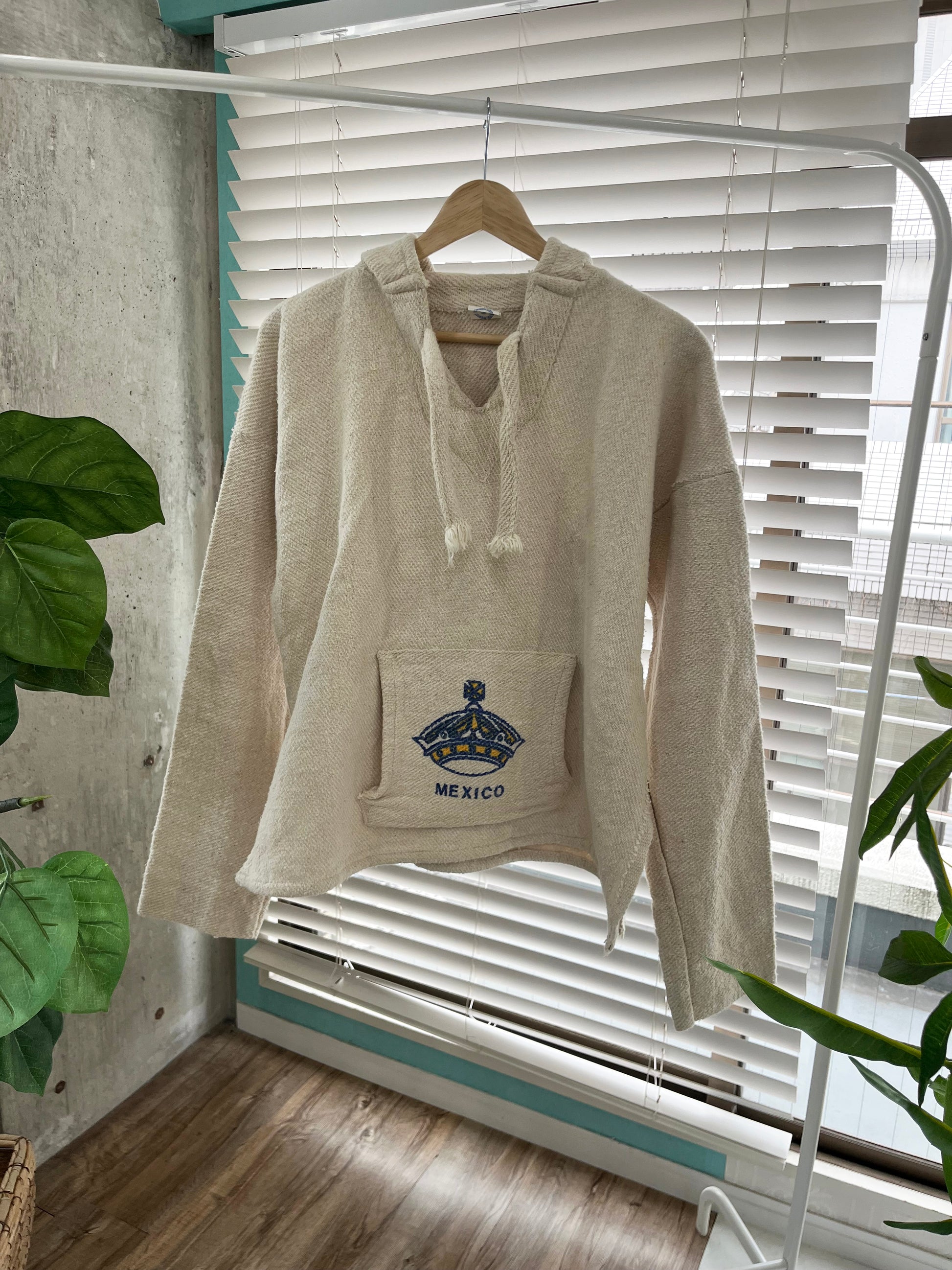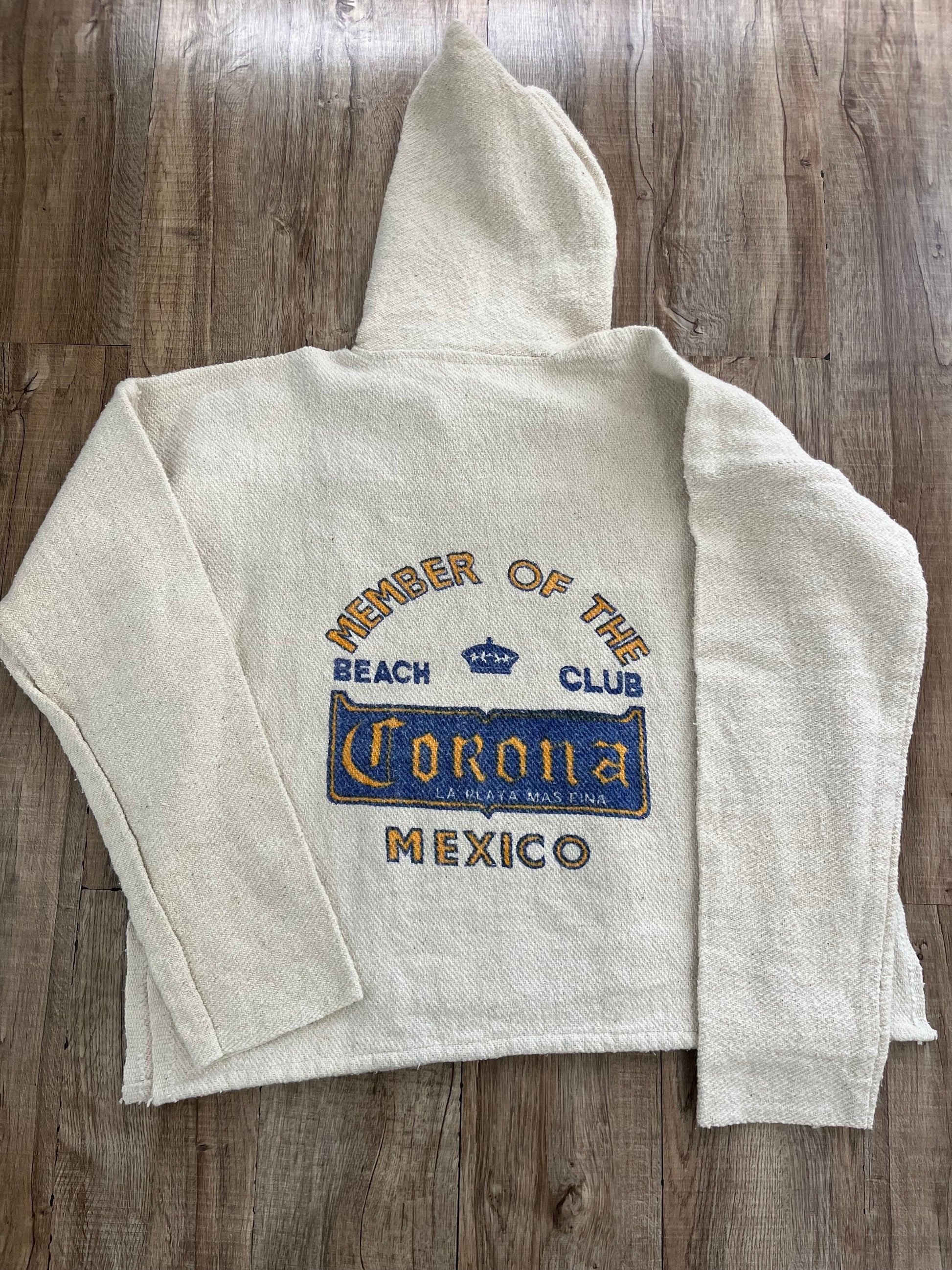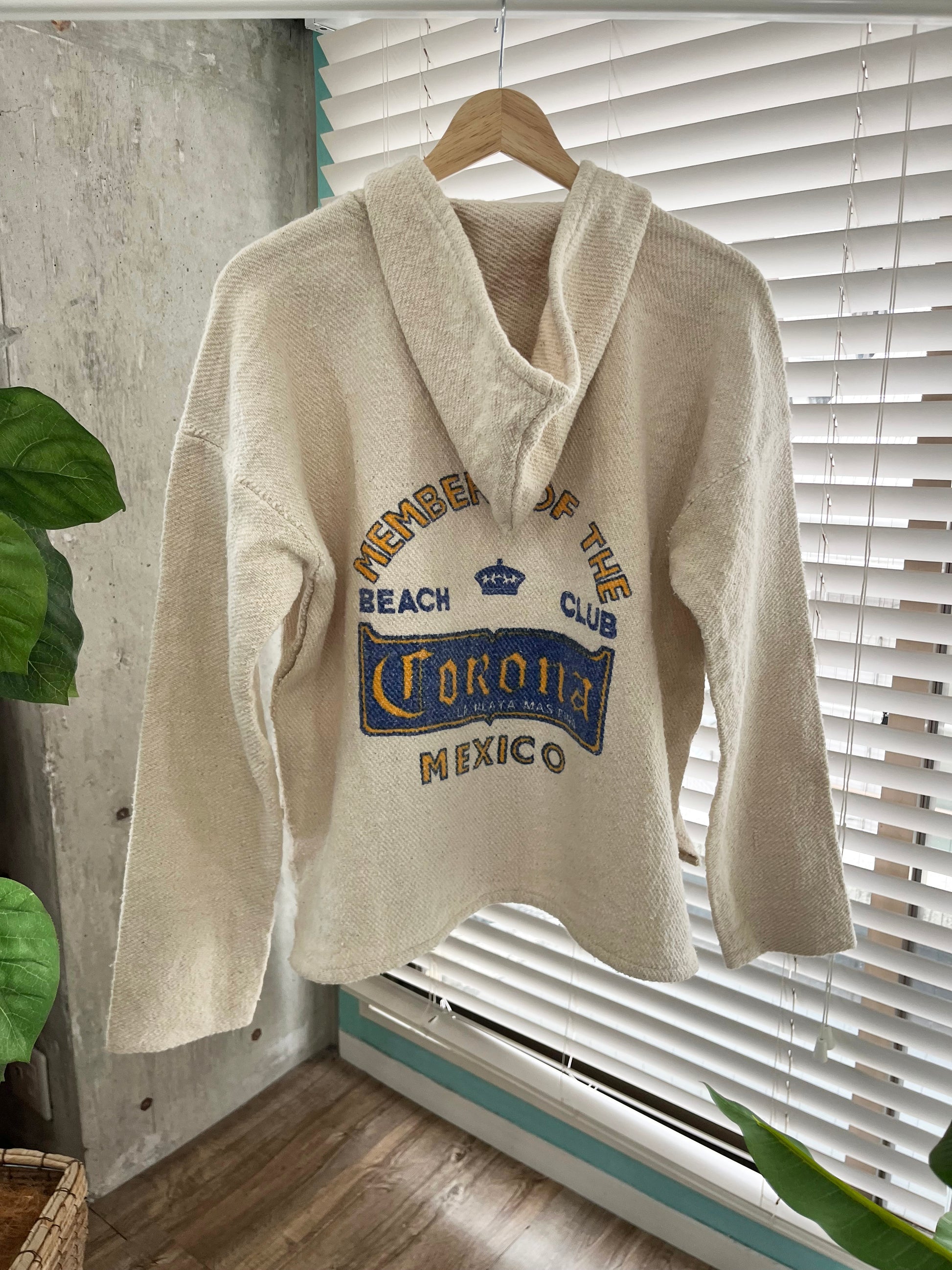 ●詳細:1960〜70年代のヒッピーやサーフカルチャーの象徴的アイテム"メキシカンパーカー" コロナビールデザインです。生成りのメキシカンパーカーは海とも相性良く、海上がりの羽織りとしてもぴったりです。サイズXL表記ですが、着丈が少し短めなので実際はL相当に感じると思います。脇スリット部分が深いので少しゆったり動きやすいです。