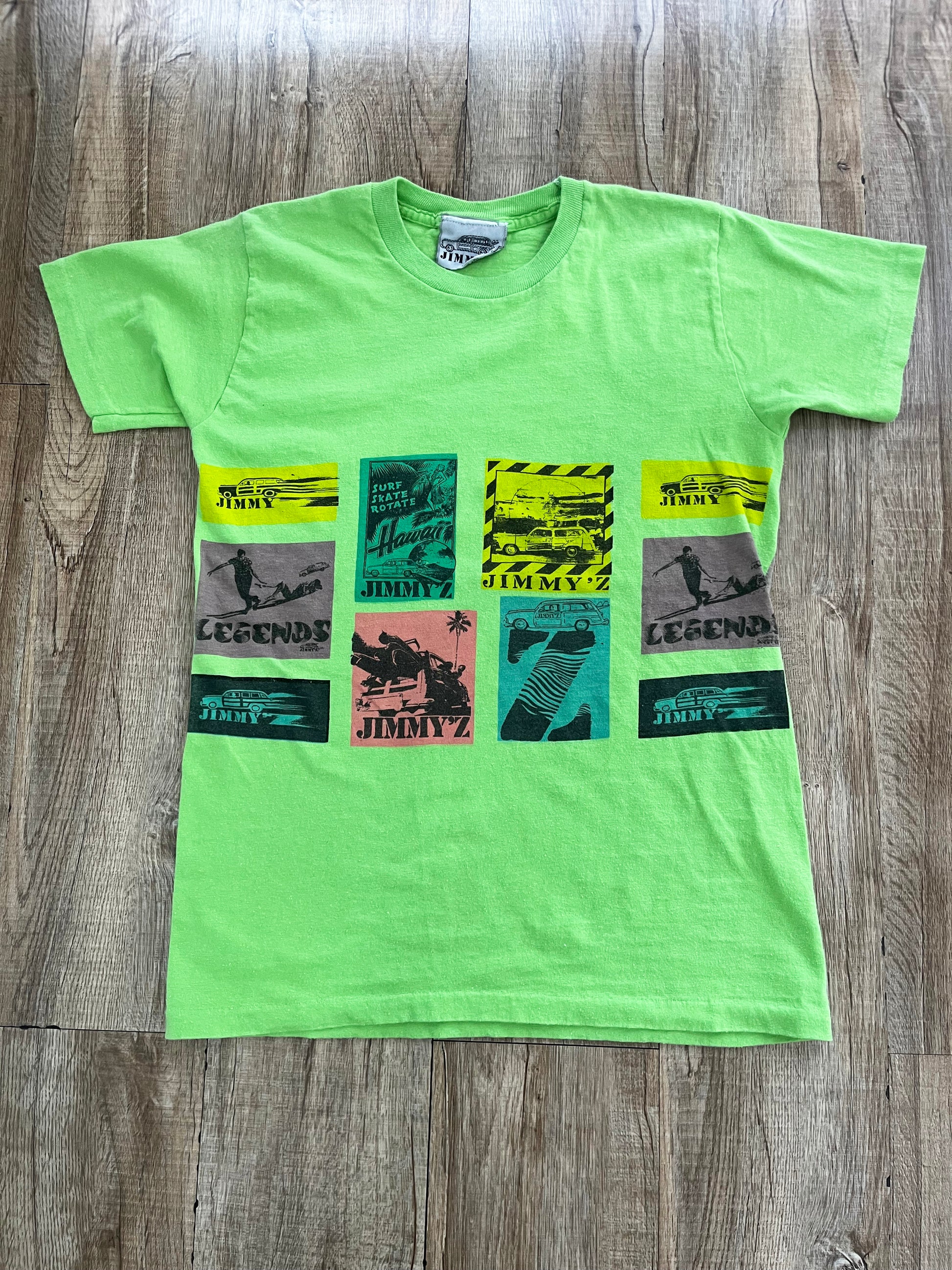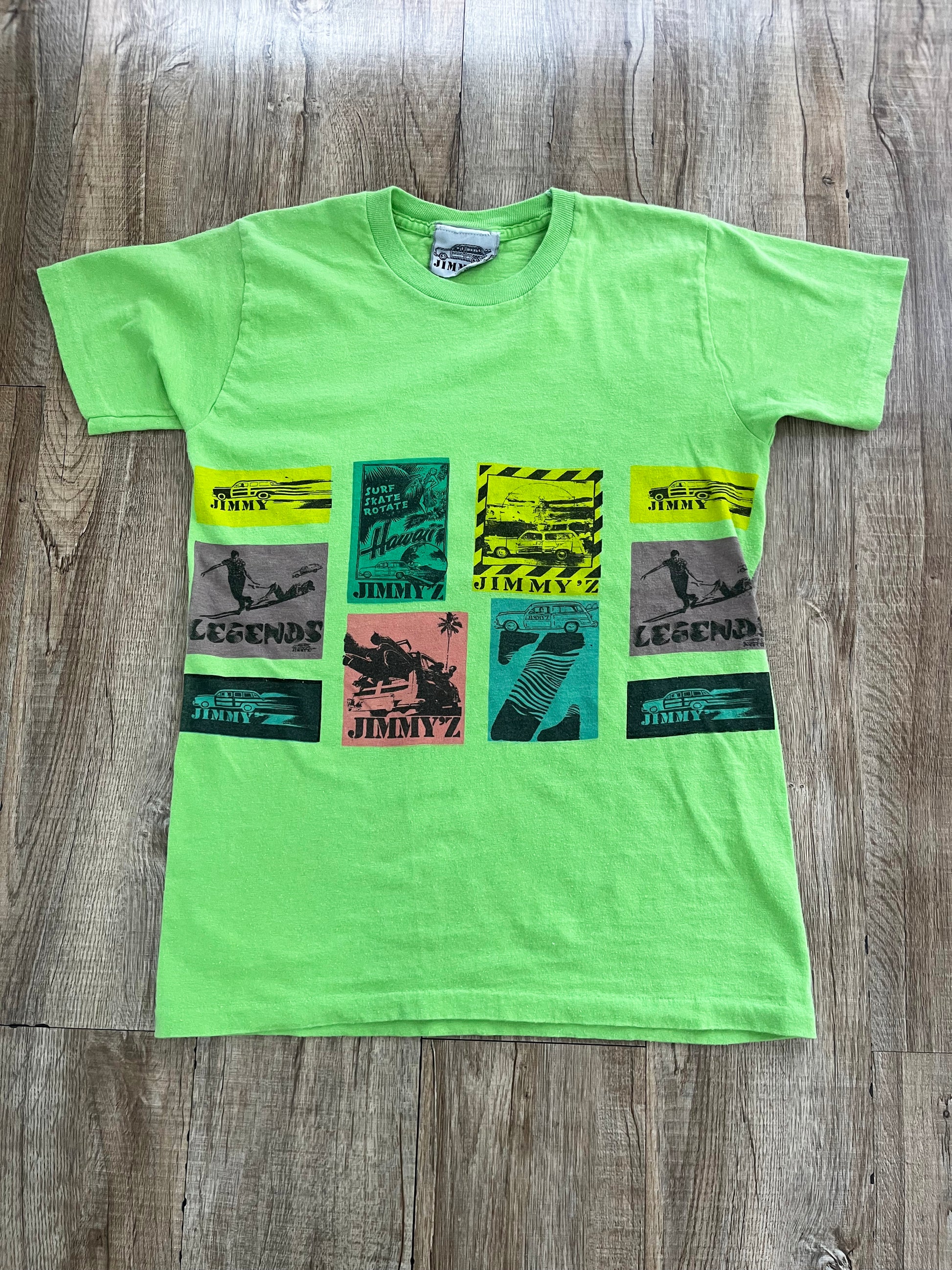 ●詳細:80年代ジミーズのTシャツです。当時流行ったネオンカラーのTシャツです。海にあう爽やかなプリント。