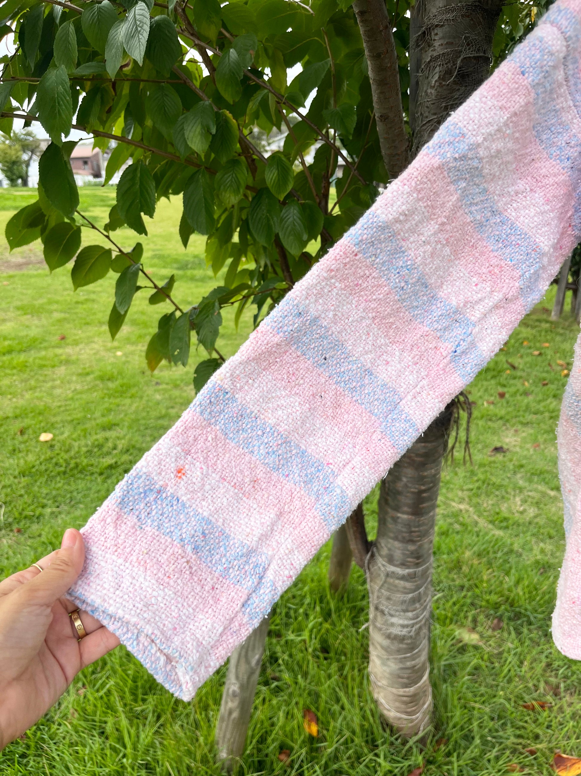 かつてのヒッピー文化やサーフ文化を象徴するアイテムの1つであるメキシカンパーカー。明るいパステルカラーの配色でコーディネイトに取り入れやすい。サイズ感はXLでユニセックスで着られる大きいめのサイズ感です。実際の着用感は着丈は長めなんですが、身幅は他のXLに比べると少し細めなのですっきりした印象を感じました。生地感はしっかりしていて暖かいのでサーフィン後にもおすすめ。海上がりに羽織るのにぴったりです。
