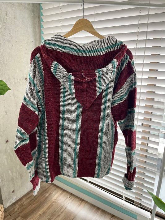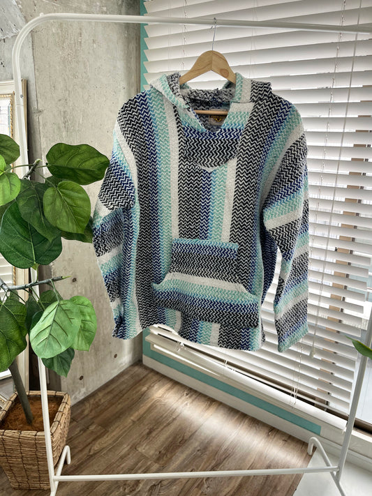 サーファーが海上がりに気軽に着れる服として知られているバハフーディー 。通称メキシカンパーカーと呼ばれ親しまれています。歴史は古く1930年代にアメリカから南下したサーファー達が、メキシコのバハ・カルフォルニアに辿り着き、メキシコの伝統的な生地セラーピブランケットを使った服を持ち帰った事が始まりと言われています。
